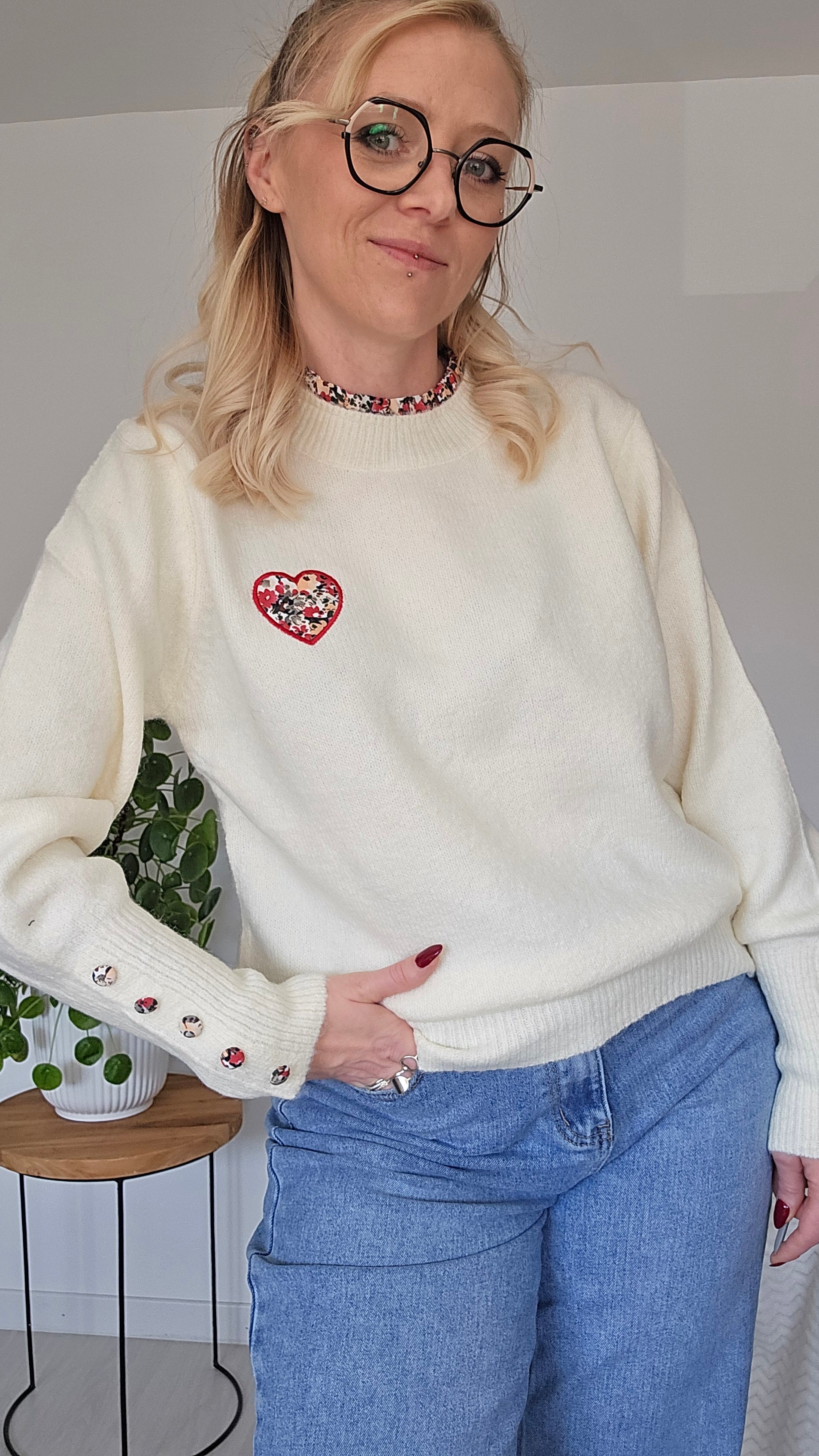 - Pull détail liberty sur le cœur, le col et les boutons des manches